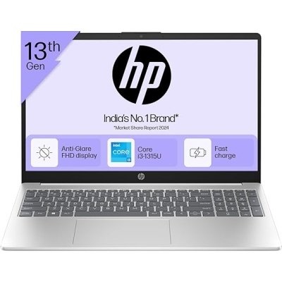 HP 15, 13th Gen Intel Core i3-1315U Laptop (8GB DDR4, 512GB SSD) Anti-Glare, Micro-Edge, 15.6″/39.6cm, FHD, Win 11, MS Office 21, Silver, 1.59kg, Intel UHD Graphics, FHD Camera, fd0186TU