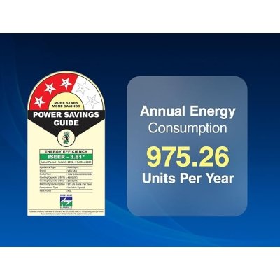 - Energy Rating: 3 Star | Energy efficiency | Annual Energy Consumption (as per energy label): 1037.79 Watts | ISEER Value: 3.80