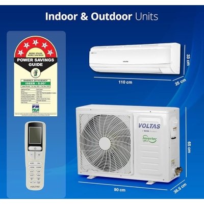 Voltas 2 Ton 5 Star, Inverter Split AC(Copper, 4-in-1 Adjustable Mode, Anti-dust Filter, 245V Vectra Plus, White)