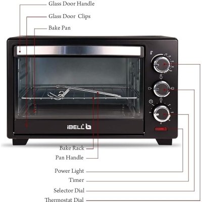 iBELL EO19LG | OTG 19 Litre, Oven Toaster Griller with Multi-Stage Heating Modes, Auto Off, 1500Watt | Black