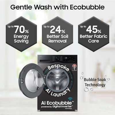 - Fully-automatic front load washing machine with AI Ecobubble and Wi-Fi Technology : Best Wash Quality, Energy Savings (up to 70%) and Water efficient