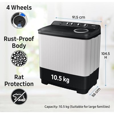 Samsung 10.5 kg, 5 star, Semi-Automatic Top Load Washing Machine (WT10C4260GG/TL, Air Turbo Drying, Light Gray,)