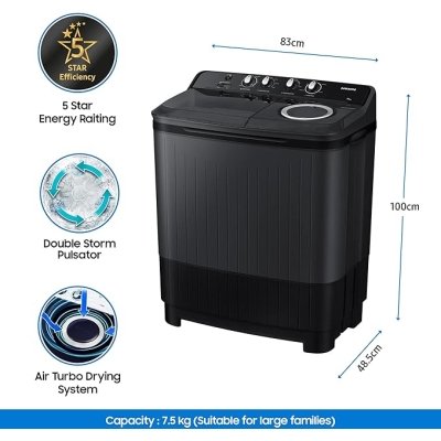 Samsung 7.5 Kg 5 Star Semi Automatic Top Load Washing Machine (WT75B3200GD/TL,DARK GRAY)