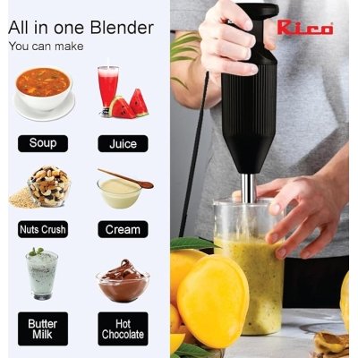 Rico Heavy Duty Portable Hand Blender For Kitchen | 2 Years Replacement Warranty | 5 Blades for Making Juice, Chutney, Smoothie, Whipping & Chopper for Easy Cutting | Non Seed Crushing Juicer Blade
