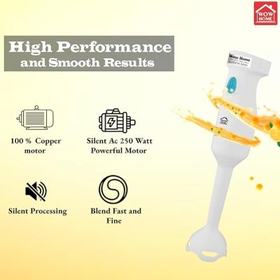 Wow Home Electric HB03 Hand Blender, 250W Powerful Motor, Stainless Steel Blades for Beating, Chopping, Blending (White)