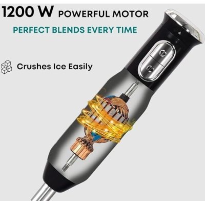 Libra 1200 Watts Electric Hand Blender Mixer for kitchen | Multipurpose Hand Blender with Milk Frother, Chopper, Whisker & Multipurpose Jar | Variable Speed and Turbo Function | 1 Year warranty