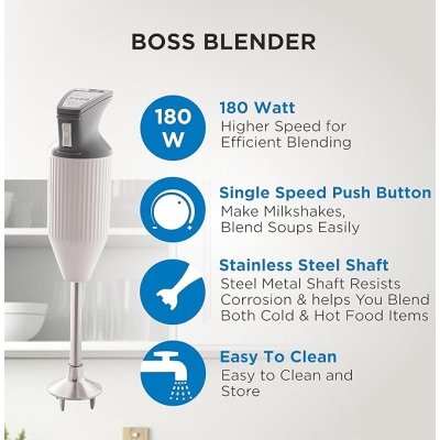 BOSS E111 Portable Hand Blender 180 Watt | Easy to Clean and Store | ISI-Marked, Grey