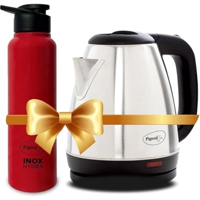 Pigeon 1.5 litre Hot Kettle and Stainless Steel Water Bottle Combo used for boiling Water, Making Tea and Coffee, Instant Noodles, Soup with Auto Shut- off Feature