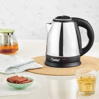 - COMPACT DIMENSIONS: With a 1.5L capacity and dimensions of 19L x 19W x 24H centimeters, this Prestige Electric Kettle for hot water is designed for space-saving elegance ELEGANT HANDLE WITH SINGLE-TOUCH LID LOCKING: For convenient use and safety