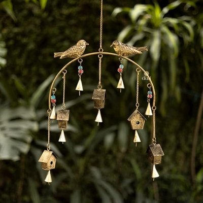 DULI Metal Windchime Wall Hanging, Feng Shui, Wall Art, Wall Decor, Positivevibes, Rustic Wall Hangings, Wall Art, Diwali Decor, Home Decor, Positive Vibes (Metal wall hanging: Birdhouse), Golden
