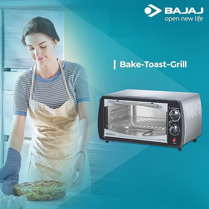 Home » Shop » Bajaj 1000Tss Oven Toaster Grill (10 liter Otg),Baking Accessories With Extra Pizza Tray,Stainless Steel Body With Transparent Glass Door,2 Year Warranty,Black&Silver,800 Watts