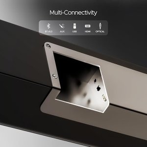 • Multiple Connectivity Options: Stay connected to the enthralling audio of this soundbar using either wired or wireless connections. Added to the Bluetooth v5.3 compatibility, the Optical, HDMI (ARC), AUX, and USB ports let you kickstart entertainment at your convenience.