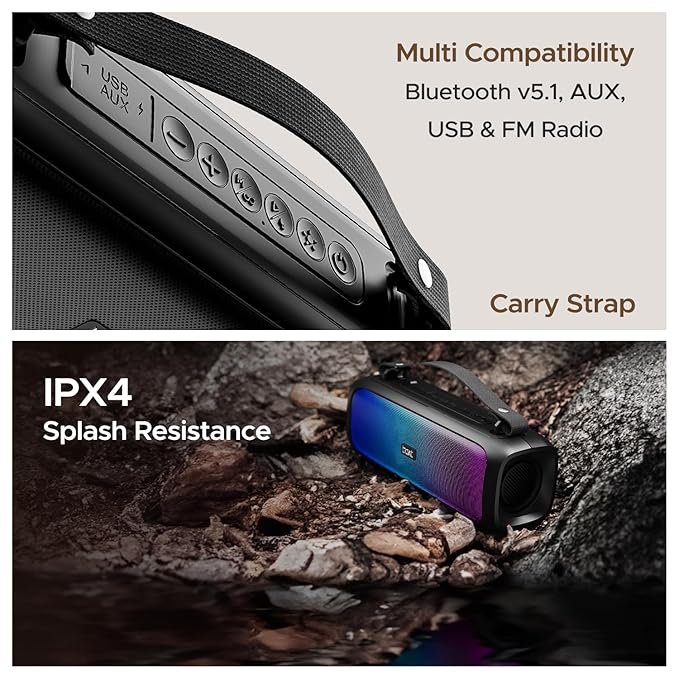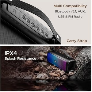 • The IPX4 marked water and splash-resistant build lets you carry your sound wherever travel without any worry.
