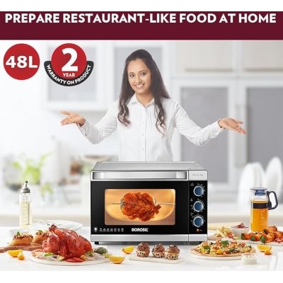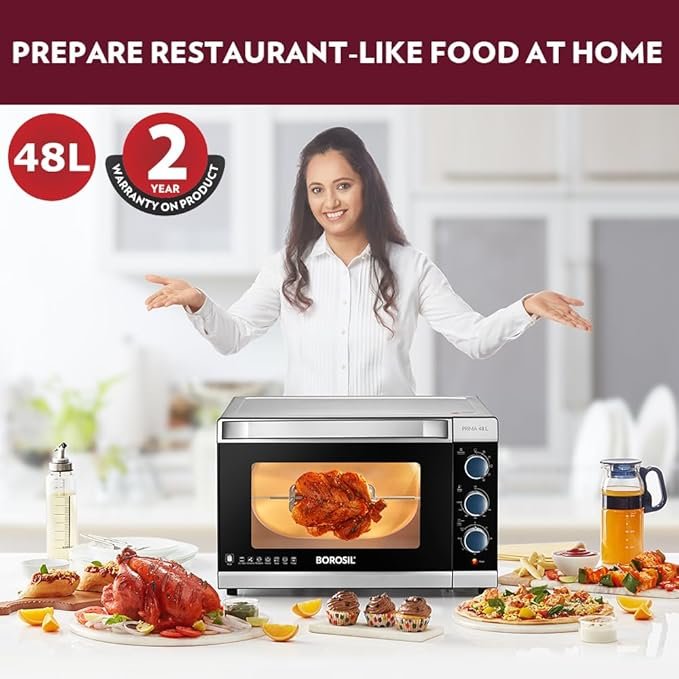 Home » Shop » Borosil Prima 48 L Oven Toaster & Grill, Motorised Rotisserie & Convection Heating, 6 Heating Modes, Silver