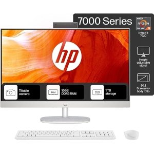 HP All-in-One PC Ryzen 5 7520U 27-inch(68.6cm) FHD IPS Display, 16GB LPDDR5, 1TB SSD, AMD Radeon Graphics, Wireless Keyboard and mouse combo, FHD Camera, (Win 11, MSO, Shell White, 6.72Kg) 27-cr0445in