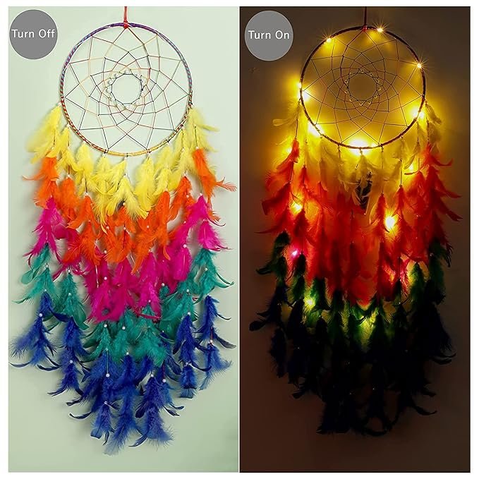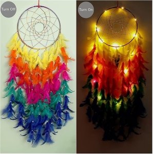 Home » Shop » ILU® Dream Catcher with Lights, Wall Hangings, Crafts, Home Décor, Handmade for Bedroom, Balcony, Garden, Party, Café, Decoration, Wedding, Decorative, Multi Feathers (21 cm Diameter)