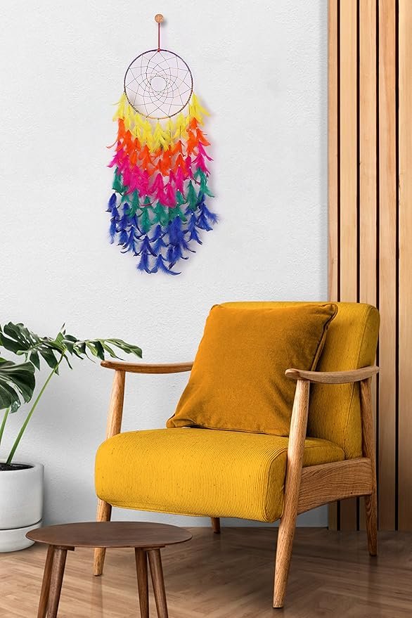 • Handcrafted Wall DECOR: This is a gorgeous hand-made dream catcher, which is much more beautiful than the picture. This Dream Catcher is Decorated with Beautiful Multicolor feathers, thread and Beads.