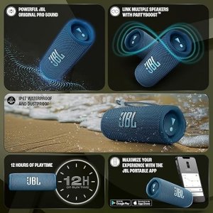 Home » Shop » JBL Flip 6 Wireless Portable Bluetooth Speaker Pro Sound, Upto 12 Hours Playtime, IP67 Water & Dustproof, PartyBoost & Personalization App (Without Mic, Blue)