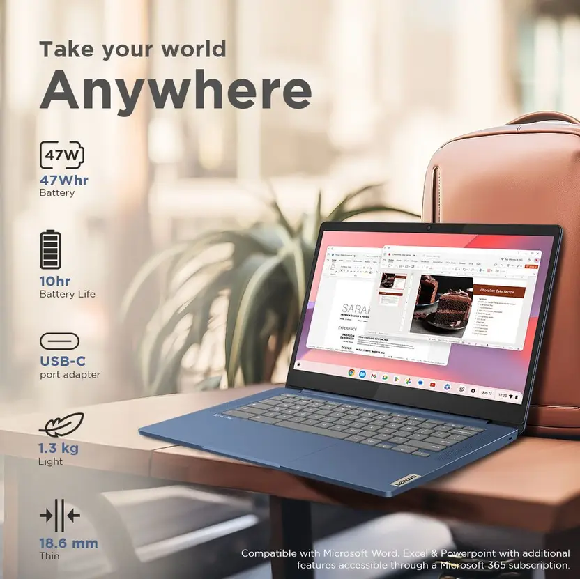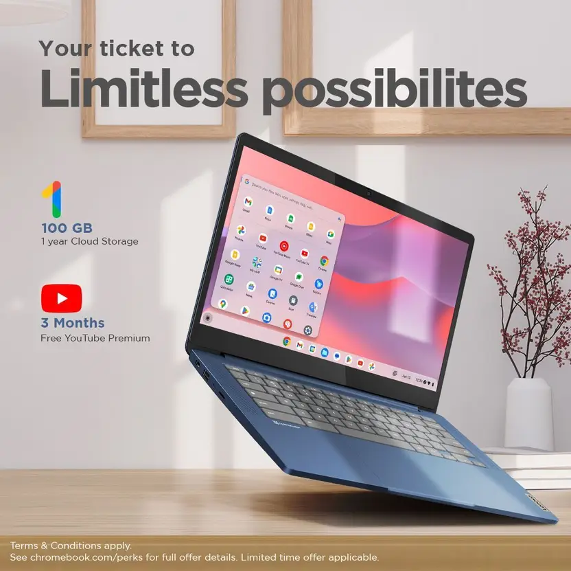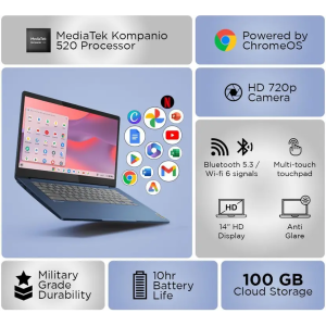 Lenovo Chromebook MediaTek Kompanio 520 – (4 GB/128 GB EMMC Storage/Chrome OS) 14M868 Chromebook (14 Inch, Abyss Blue, 1.3 Kg)