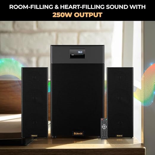 OBAGE Newly Launched Ultra-10 250W 2.1 Home Theatre System with 10″ Woofer, HDMI ARC, Optical in, Bluetooth V5.3, USB