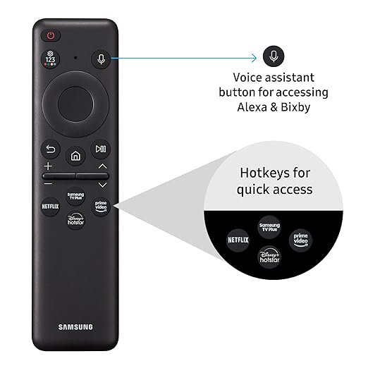 Remote Control Description ‎Voice Assistant Key | Hotkeys for Prime Video, Netflix, Samsung TV Plus and Disney+Hotstar