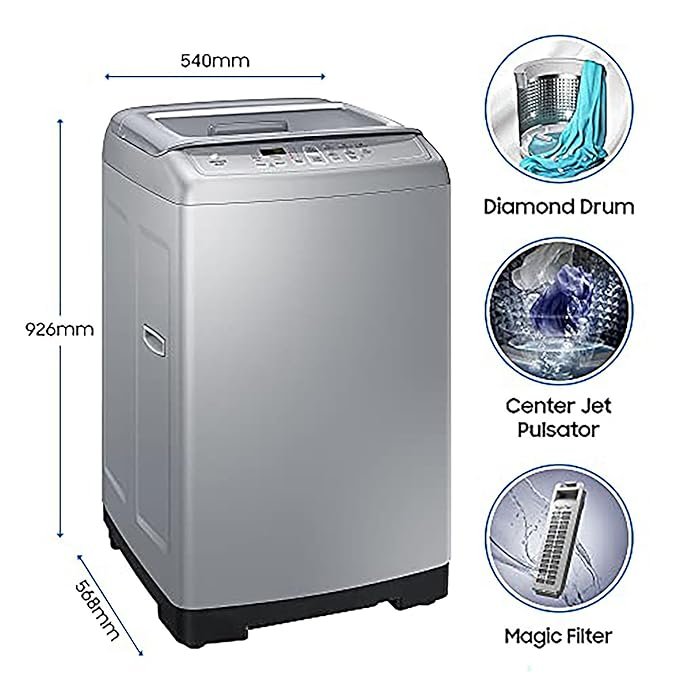 Samsung 7 kg, Fully-Automatic Top Load Washing Machine with Diamond Drum (WA70A4002GS/TL, Imperial Silver)