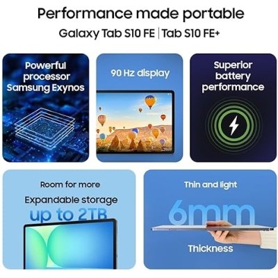 • Designed for Life on the Go: The Galaxy Tab S10 FE Series is thin and light, offering enhanced portability. Available in 3 New trendy Colors: Blue, Gray and Silver