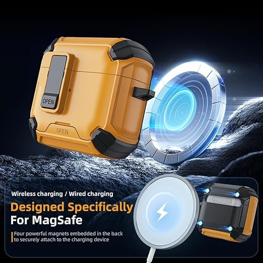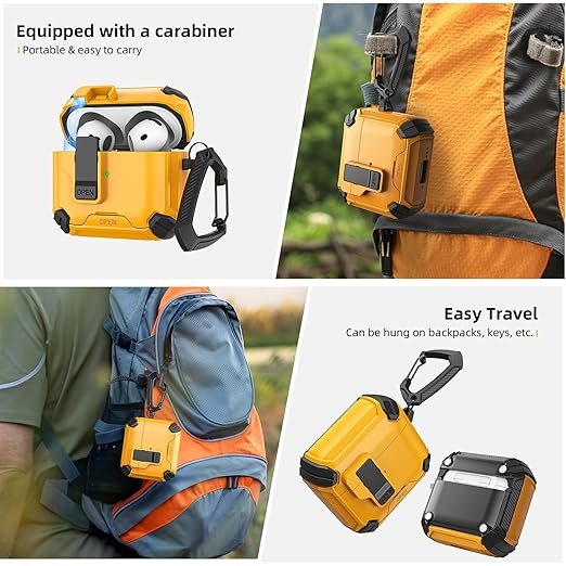 • 【Secure Lock Clip & Auto Pop-up】For adding security, this for airpods 4 case men is designed with a safety lock that prevents the AirPods from accidentally popping open when carrying or dropped. Embedded with 2 square mutually exclusive magnets, so that open top cover just need “One Click” will pop up!