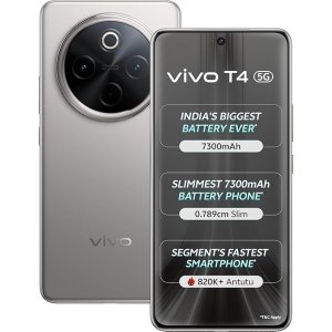 Home » Shop » VIVO T4 5G (Phantom Grey, 8GB RAM+256GB Storage) | Snapdragon 7s Gen 3 | 120Hz Quad-Curved AMOLED | 7300mAh+90W Fast Charge | 50MP Sony OIS Camera | Military Grade Build | AI Photo Enhance | AI Erase