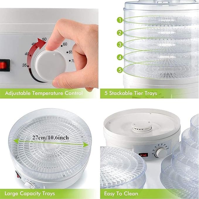 WENGTY Food Dehydrator with 5 Stackable Tray|Fruit Dryer Machine Home|Vegetable,Flower,Meat Beef Jerky Drying (White)