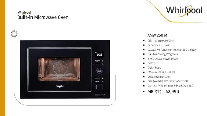 Home » Shop » Whirlpool 25L Built in Oven Convection Microwave Oven (AMW 250 M, Black), Medium
