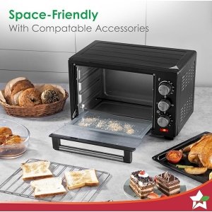 • Thoughtfully Designed, For Your Convenience: Auto shut-off, temperature resistant tempered glass window, crumb tray for easy cleaning help you bake conveniently.Warranty: Wonderchef products are inspired by Italian Design and adhere to German Quality Standards. This product is covered by a reliable 2-year warranty. T&C apply.