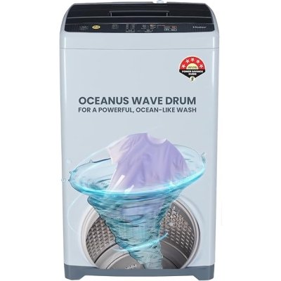 Haier 7 Kg 5 Star Fully Automatic Top Load Washing Machine with Oceanus Wave Drum, Magic Filter, 8 Wash Programs (HWM70-AE, Moonlight Silver, Stainless Steel Drum, 15 Mins Quick Wash)