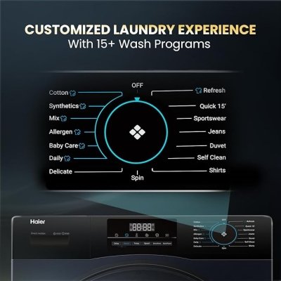 - Wash Programs: 15 No.of Programs – “15 Wash programs:- Cotton/Synthetics/Mix/Allergen/Baby Care /Daily/Delicate/Quick/Refresh/Sportswear/ Jeans / Duvet/ Self Clean/ Shirts / Spin
