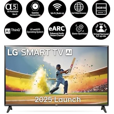 - Smart TV Features: WebOS Smart TV | AI ThinQ | Apple Airplay 2 & Homekit | Game Optimizer| Filmmaker Mode | α5 AI Processor 4K Gen6 | HDR 10 |1.5 GB RAM + 8 GB Storage | Unlimited OTT App Support: Netflix, Prime Video, Jio Hotstar, Apple TV, Spotify, SonyLIV, Discovery+, Zee5, Voot, Google Play Movies & TV, YuppTV, Youtube | Energy Rating: 2 Star | Annual Energy Consumption: 227.58 kWh/Year