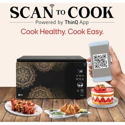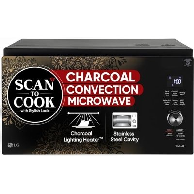 LG 32 L Scan to Cook Wi-Fi Enabled Charcoal Convection Healthy Microwave Oven (MJEN326UIW, Black – Regal Pattern, Heart Friendly Recipes, Pasteurized Milk, Ghee, Diet Fry & 360° Motorised Rotisserie)