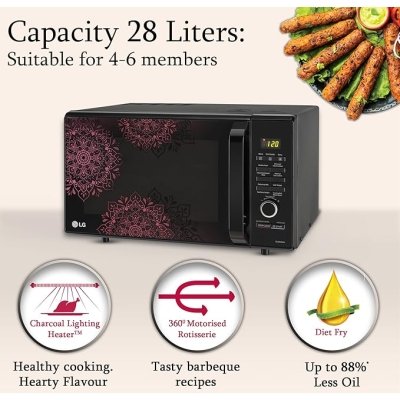 LG 28 L Charcoal Convection Healthy Microwave Compact Oven(Mj2887Bium, Black, Healthy Heart Recipes, Diet Fry,Pasteurized Milk, 360°Motorised Rotisserie & 10 Yrs Warranty-Charcoal Heater, Ebony Regal)