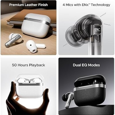 - 4 Mics with ENx: Speak and hear clearly without noisy distractions, regardless of your location. Be it while traveling by road, working in a busy workspace, or waiting at airport lounges, ENx technology in the four mics picks up only your voice from the chaos for hassle-free communication.