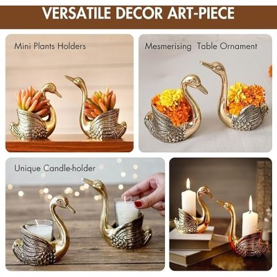 - Package Content: Two Golden Metal Loving Swan Couple Showpieces